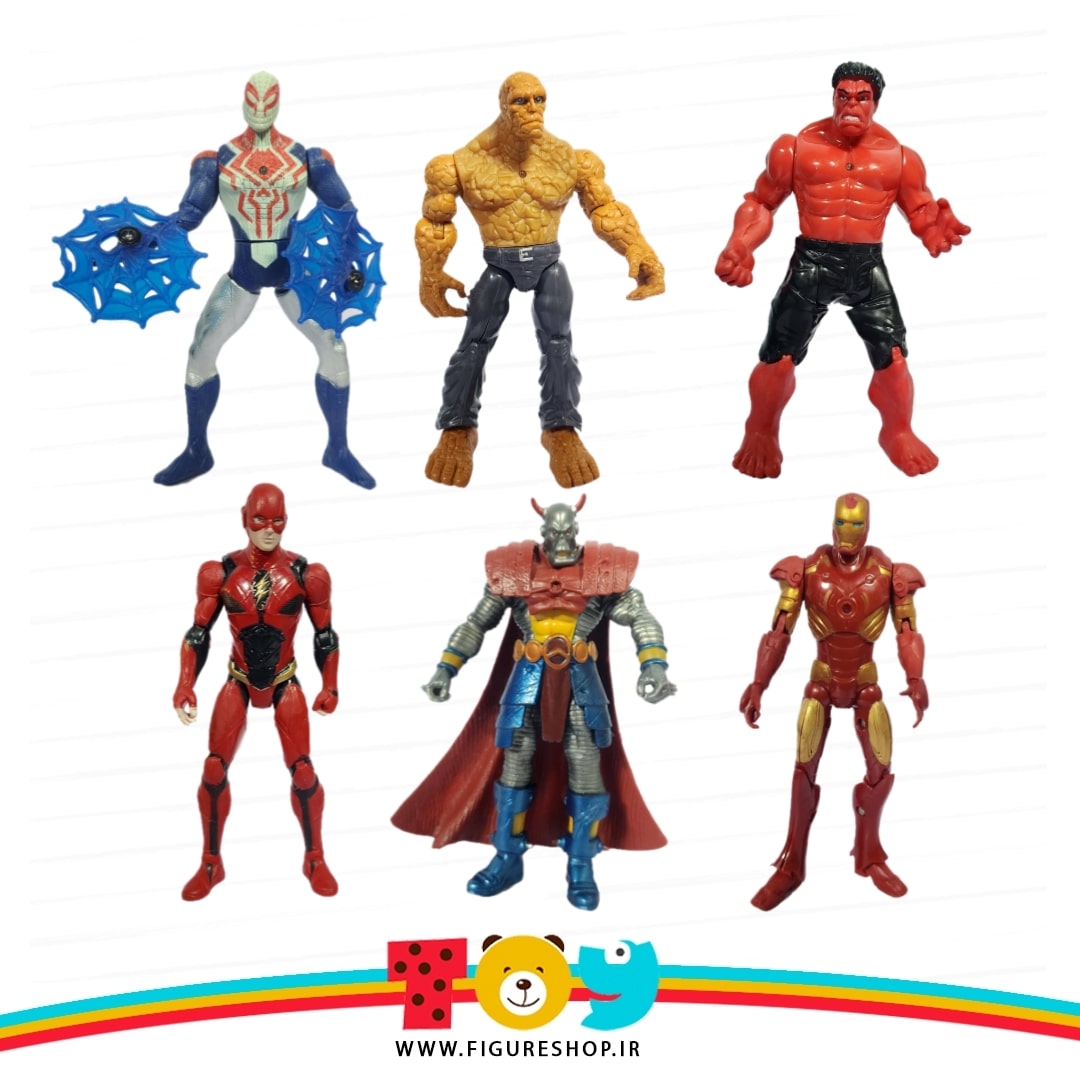 - شامل شخصیتهای هالک قرمز،کاپتان امریکا،سوپرمن،بتمن،اسپایدرمن ابی،ایرونمن،فلش،گرین لنتر،اولتران،ملکیث،ولورین و مرد سنگی…
