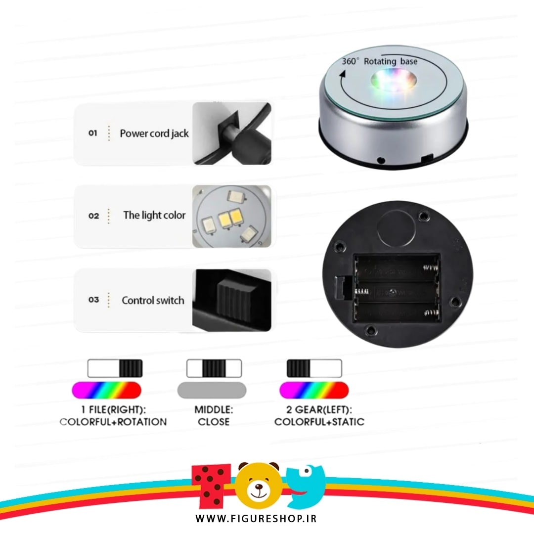 - در دو حالت نور آرجی بی ثابت و آرجی بی چرخان کار میکند.( نورها فقط در حالت باطری کار میکند. )